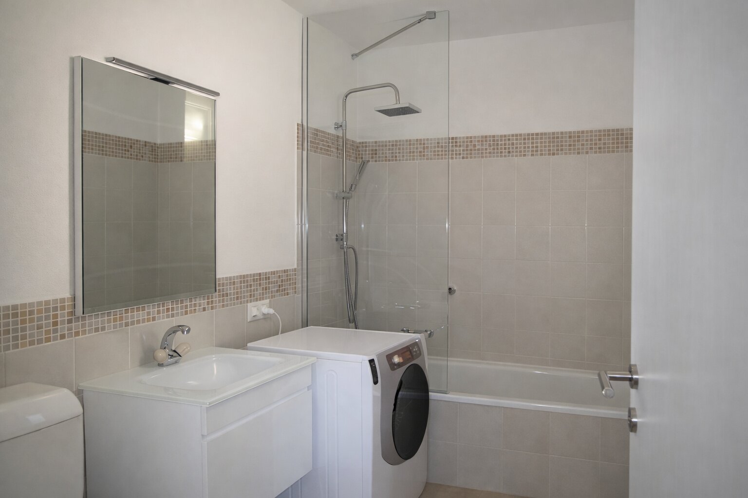 Oltre che al comodo locale lavanderia in comune offerto dalla palazzina, nel bagno principale c'è la possibilità di installare lavatrice privata.