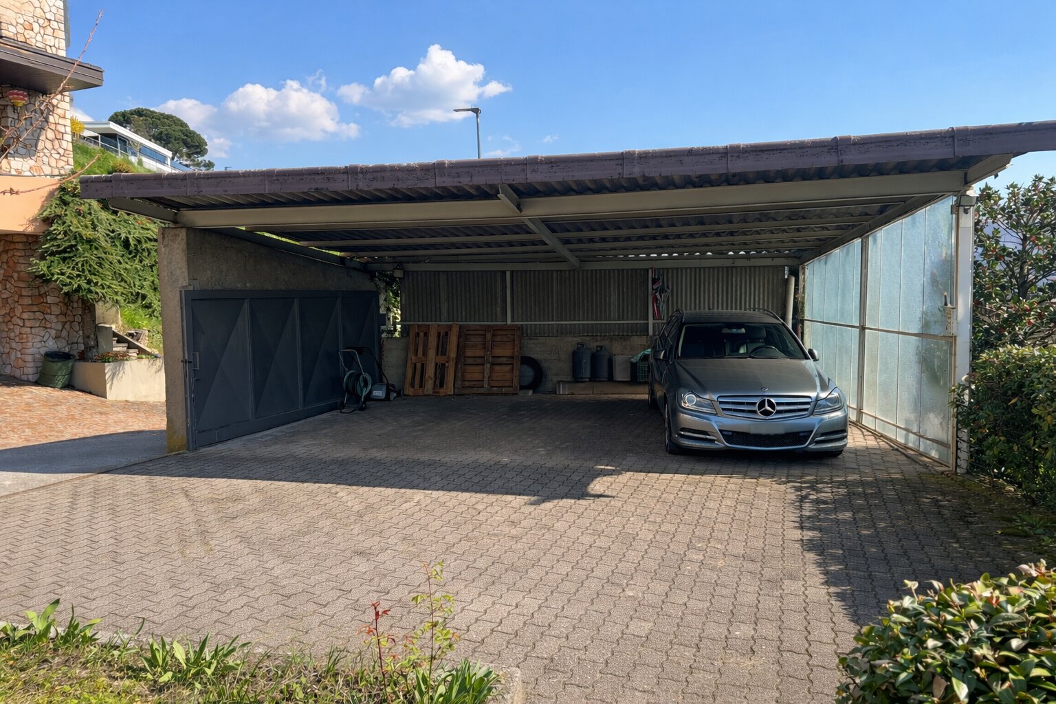 All’esterno, la proprietà sidistingue per un mappale di circa 1’042 mq con spazi molto interessanti e benarticolati, tra cui giardino e 4 terrazze complessive. Due terrazze si trovanoal primo piano dell’edificio e altre due ai livelli superiori della proprietà,accessibili tramite scale esterne, fino a raggiungere i posti auto coperti,situati accanto all’accesso carrabile sulla strada superiore di Strada Regina.La presenza di affacci e accessi tra Via S. Gottardo e Strada Reginacontribuisce a valorizzare ulteriormente l’unicità dell’insieme.