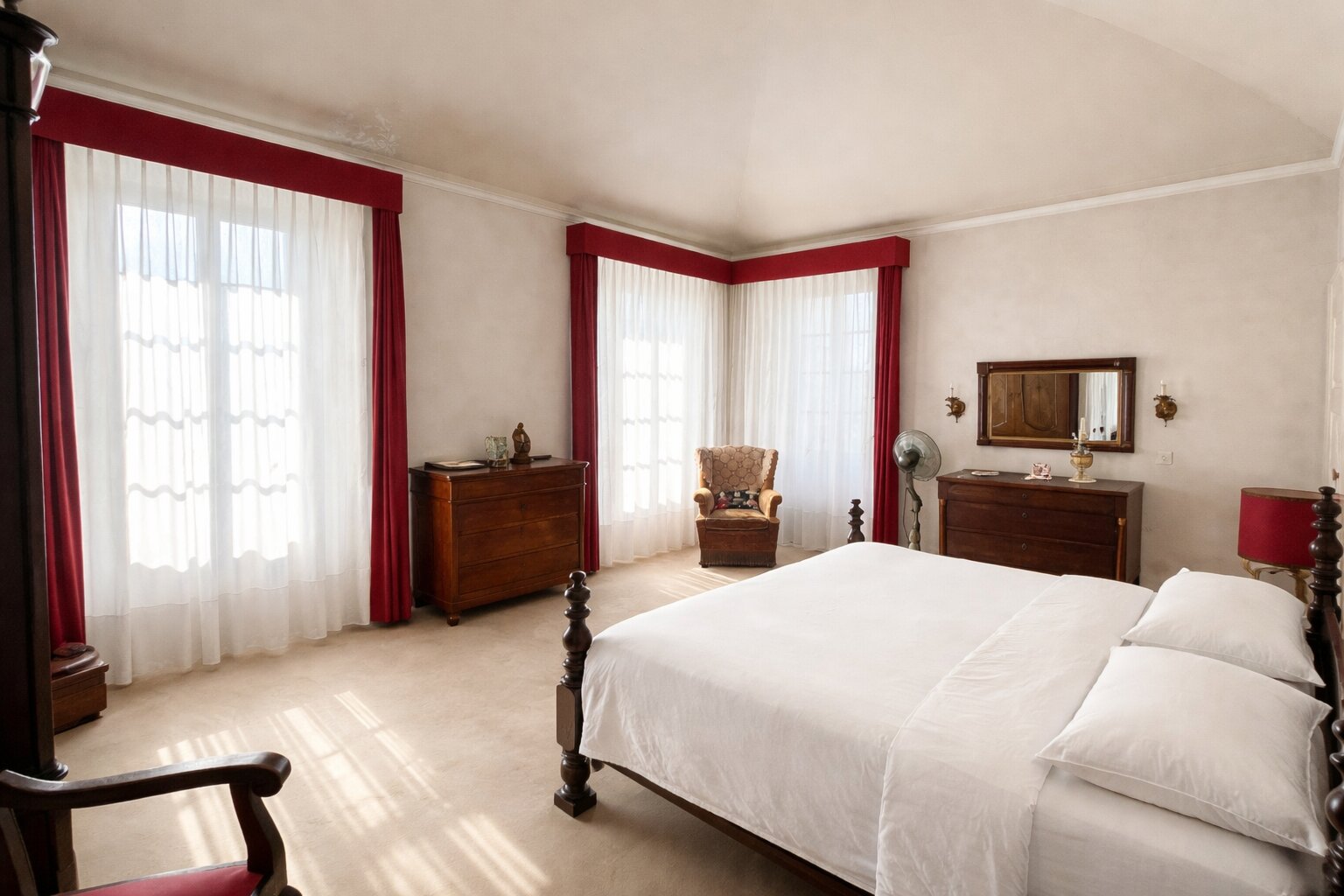 La villa conserva il saporeautentico dell’epoca grazie a elementi architettonici di grande personalità,tra cui pavimenti originali in parte conservati e/o ripristinabili, camini inmarmo d’Arzo e un suggestivo salone affrescato.